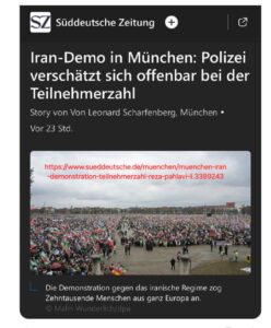 Laut der Süddeutschen Zeitung überschätzt die Polizei München Teilnehmerzahlen der Pahlavi-Unterstützer-Kundgebung auf der Theresienwiese sechsstellig!