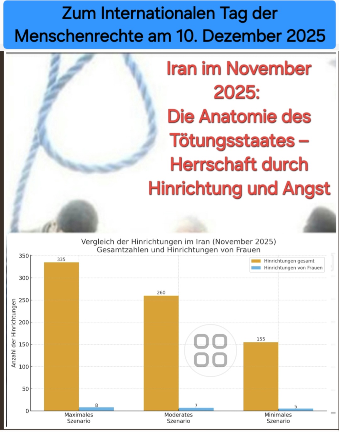 Die genaue Zahl der Hinrichtungen wird vom Regime bewusst nicht offengelegt, und selbst bekannte Zahlen bleiben nur eine erschütternde Dunkelziffer. Menschenrechtsorganisationen dokumentieren eine Welle staatlicher Exekutionen,(Amnesty International und Iran Human Rights (IHRNGO), die ihr historisches Vorbild in den Massakern der 1980er‑Jahre findet. Selbst die konservativsten Zahlen nennen über 155 Hinrichtungen, darunter fünf Frauen. Realistischere Recherchen sprechen von 260 bis 270, während Netzwerke politischer Gefangener mehr als 335 dokumentierte Hinrichtungen melden – darunter mindestens acht Frauen, 43 Luren, 37 Kurden, 22 Aserbaidschan‑Türken, 13 Araber, 12 Gilaken, 6 Belutschen sowie 5 afghanische Staatsangehörige.